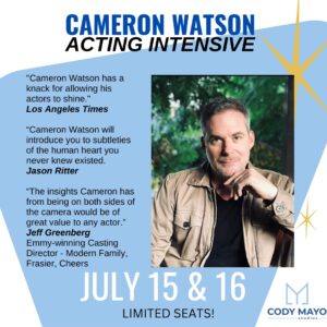 Cameron is an in-demand private acting coach, working with acclaimed actors on film and television projects, including Academy Award winners Allison Janney and Octavia Spencer. In addition, Cameron owns and teaches at the exclusive Cameron Watson Acting Studio in Hollywood. He specializes in advanced scene study and acceptance is by referral only.